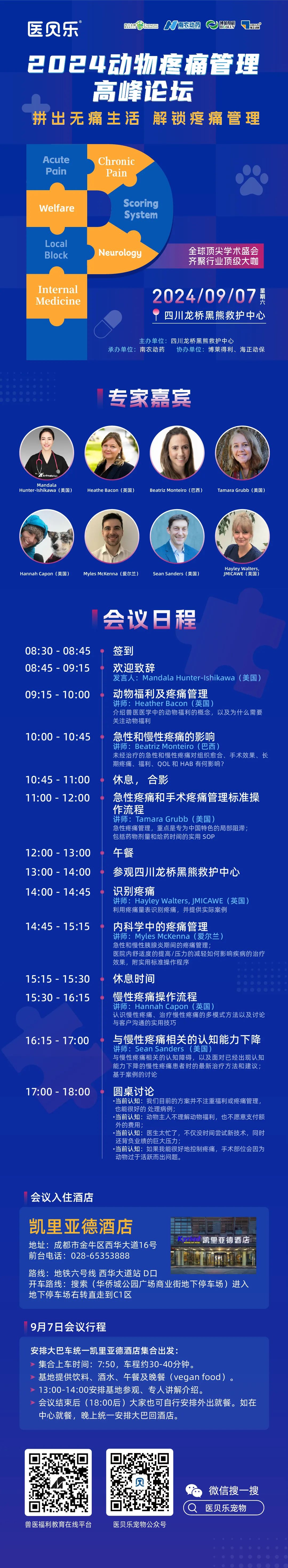 《2024动物疼痛管理高峰论坛》即将召开,全球顶尖学术盛会,齐聚行业顶级大咖!!!