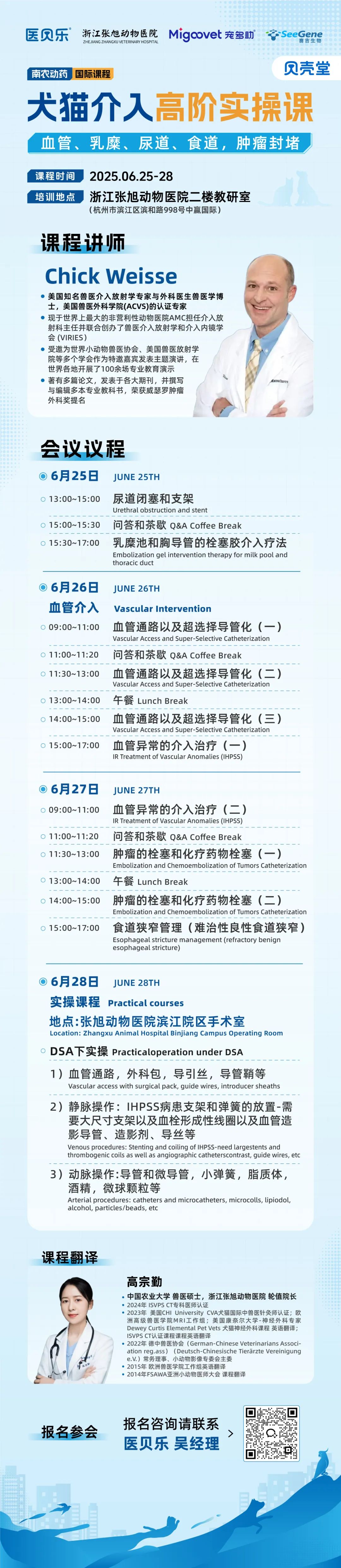 【贝壳堂】| 美国兽医介入泰斗–Dr.Chick Weisse 6月亲临杭州授课,多介入领域全解析!!!