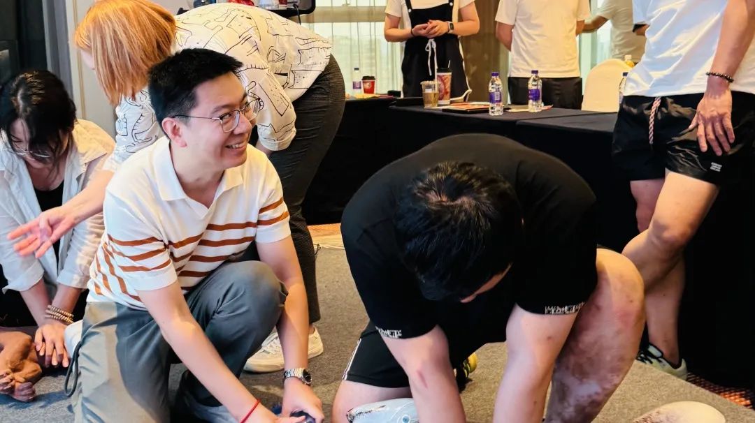 本次课程还精心准备了“急救”实操演练环节,全员分为多个小组模拟练习急救场景,轮流练习心肺复苏术施救全过程,如摆放体位、复苏步骤等,讲师一对一现场指导纠正规范操作,帮助大家进一步掌握应急救护方法,强化急救诊疗技能。