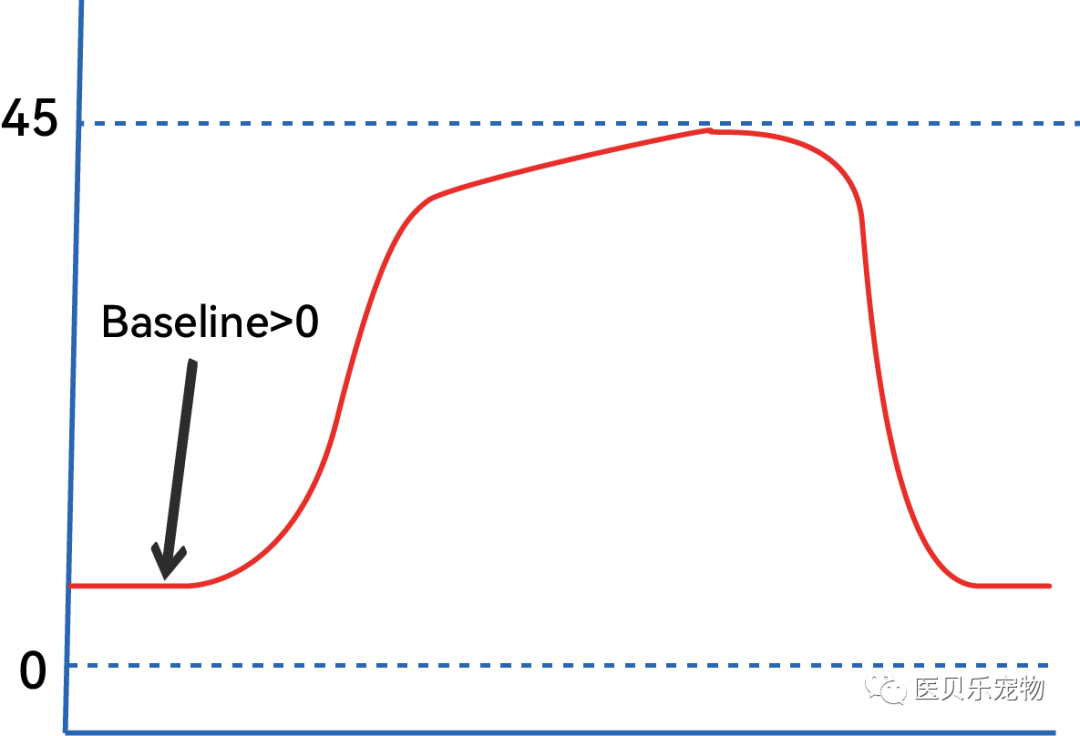 由于幼龄动物的体型和潮气量较小,很容易导致机械死腔的增加。原因包括气管插管过长和不合理的呼末二氧化碳检测仪链接。图2显示的是动物呼吸死腔增加的呼末二氧化碳监测图。因此,应该提供氧气和适合幼龄动物大小的气囊的呼吸回路,以帮助它们的呼吸。非复吸式回路可以减少呼吸阻力,使麻醉剂浓度更快变化,对于这些幼龄患者是更好的选择。由于这些患畜的低血氧风险很高,在麻醉诱导前使用适当大小的面罩进行预吸氧是非常重要且必要的。