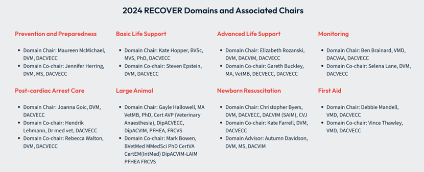 RECOVER机构汇集了兽医复苏科学杰出的专家以及其他学科的专业人员,制定过程参考了美国心脏协会制定人医CPR指南的流程。