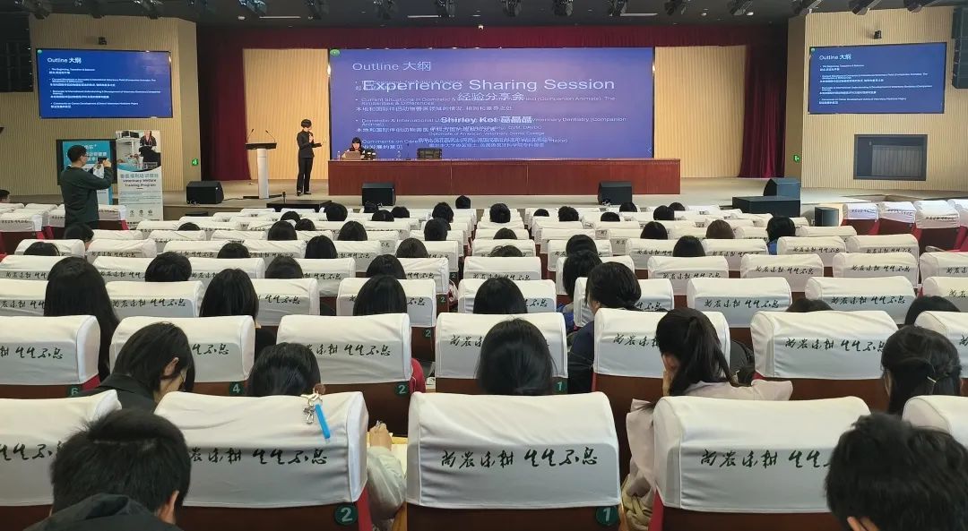 此次上海之旅,医贝乐还联合东西部兽医平台及上海农林职业技术学院特别邀请兽医福利教育项目与兽医牙科专家Shirley Kot博士于4月24日在该校,为160位在读兽医专业学生带来了一场别开生面的经历分享。