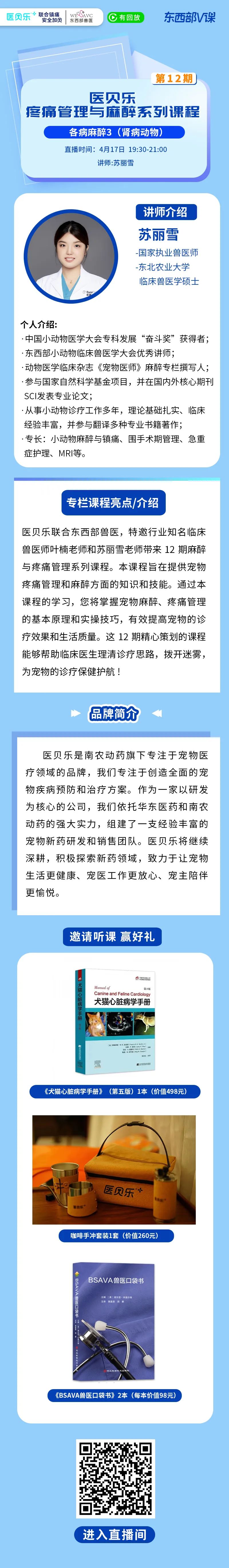 4月17日直播课 | 各病麻醉3(肾病动物)专题 特邀名师授课 助力精湛医术